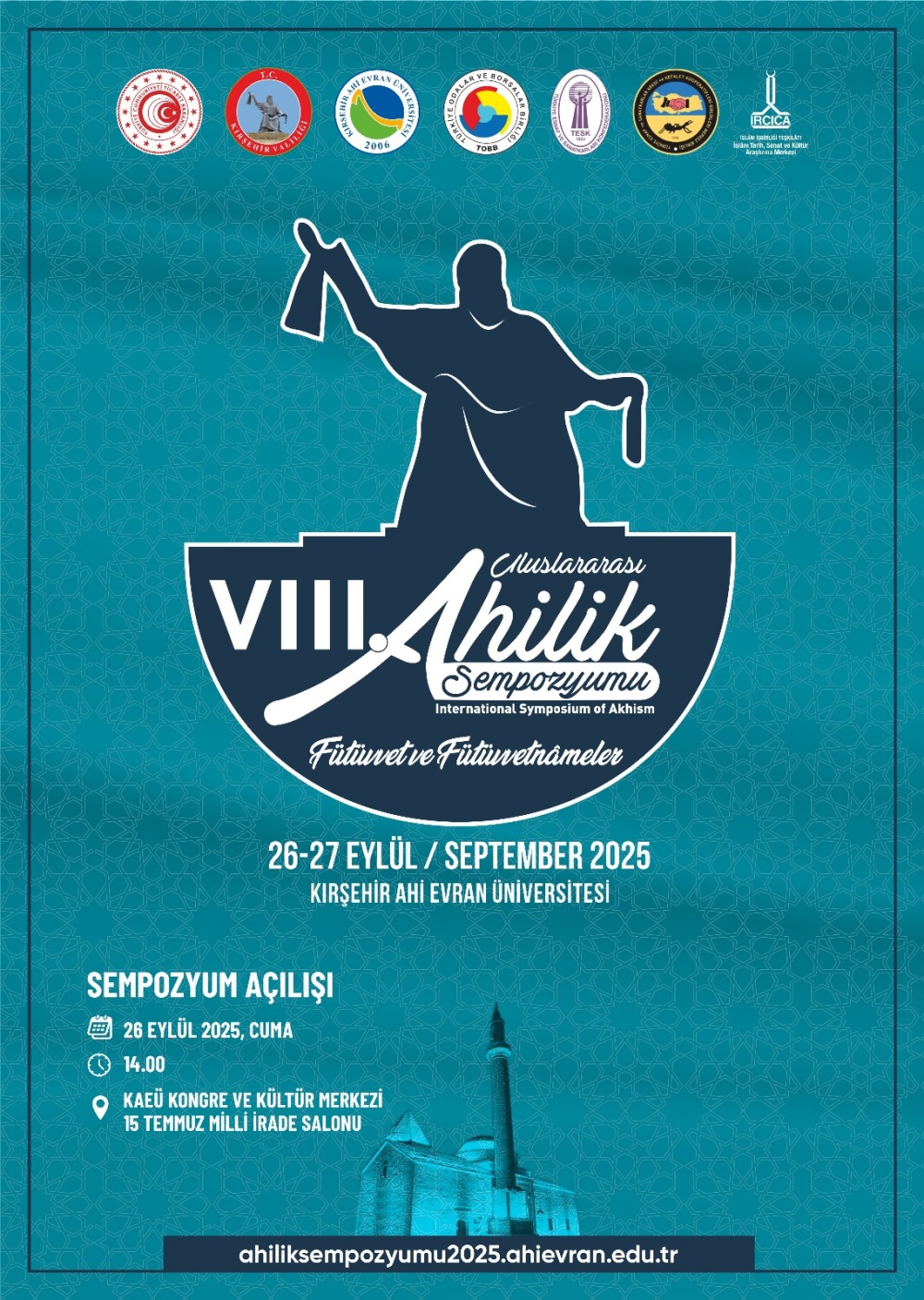 Kırşehir Ahi Evran Üniversitesi, 38. Ahilik Haftası kapsamında 26-27 Eylül 2025 tarihlerinde “Fütüvvet ve Fütüvvetnâmeler” temalı VIII. Uluslararası Ahilik Sempozyumu’na ev sahipliği yapacak.