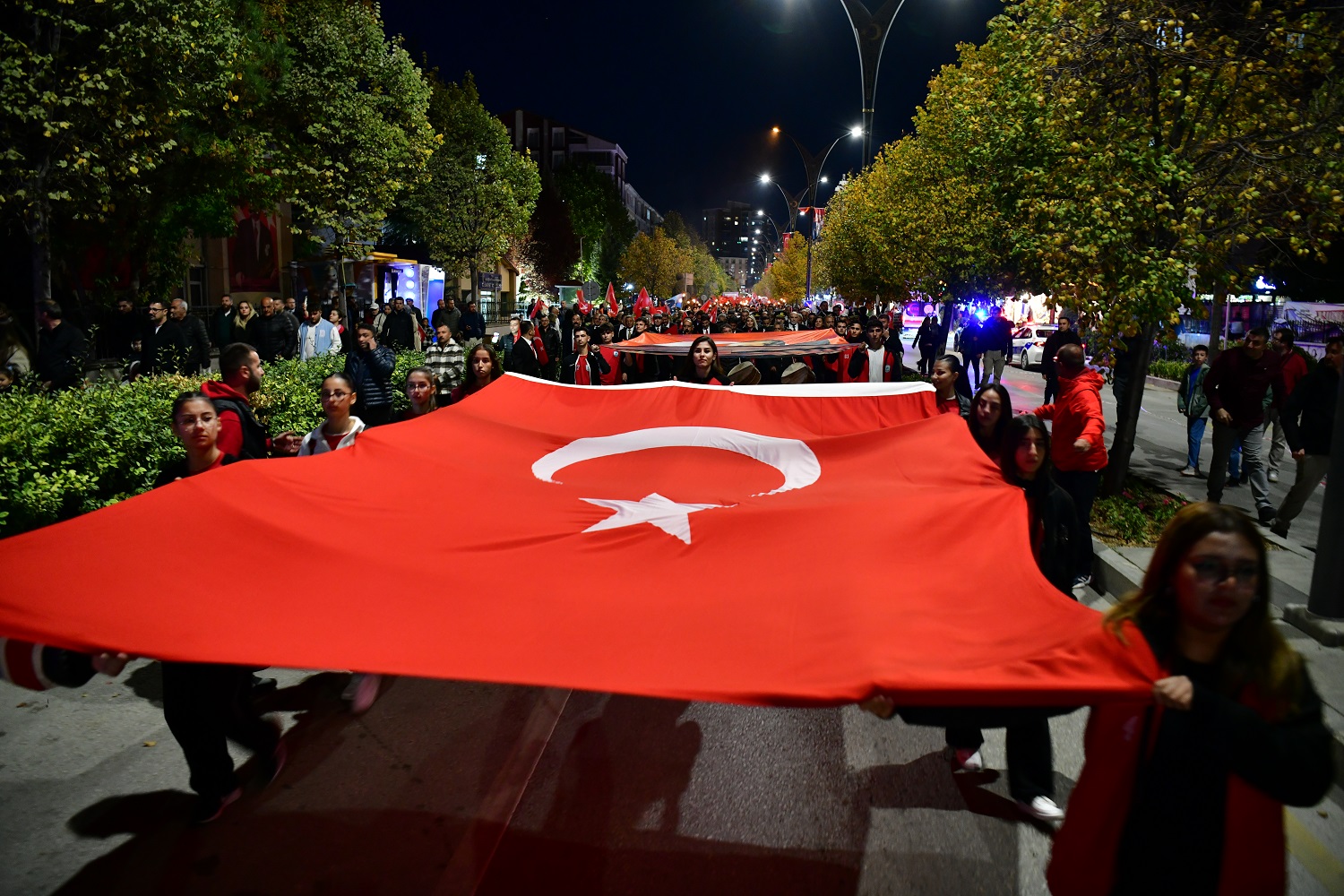 Cumhuriyetin 102. yılı kutlamaları kapsamında Kırşehir’de Fener Alayı düzenlendi. Valilik önünden başlayan yürüyüş, Cacabey Meydanı’na kadar coşkulu bir şekilde devam etti.
