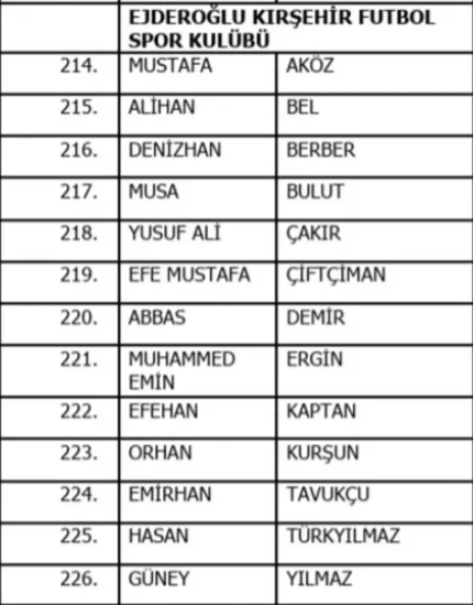 Türkiye Futbol Federasyonu (TFF) tarafından yürütülen profesyonel liglerdeki bahis soruşturması kapsamında, Kırşehirspor’dan 13 futbolcunun Profesyonel Futbol Disiplin Kurulu’na (PFDK) sevk edildiği açıklandı.