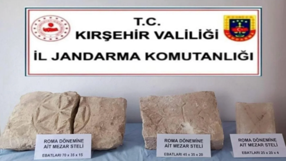 Kırşehir İl Jandarma Komutanlığı tarafından tarihi ve kültürel mirasın korunması amacıyla sürdürülen “Anadolu Mirası Operasyonları” kapsamında gerçekleştirilen çalışmada, Roma-Bizans dönemine ait olduğu değerlendirilen 3 adet mezar steli ele geçirildi.