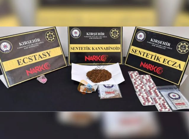 Soruşturmanın derinleştirilmesi sonucunda, uyuşturucu maddeleri temin ettiği belirlenen Y.E.B.’nin üzerinde ve ikametinde yapılan aramalarda 3 parça halinde toplam 33,89 gram sentetik kannabinoid, 84 adet sentetik ecza hap ve 6 adet ecstasy bulundu.