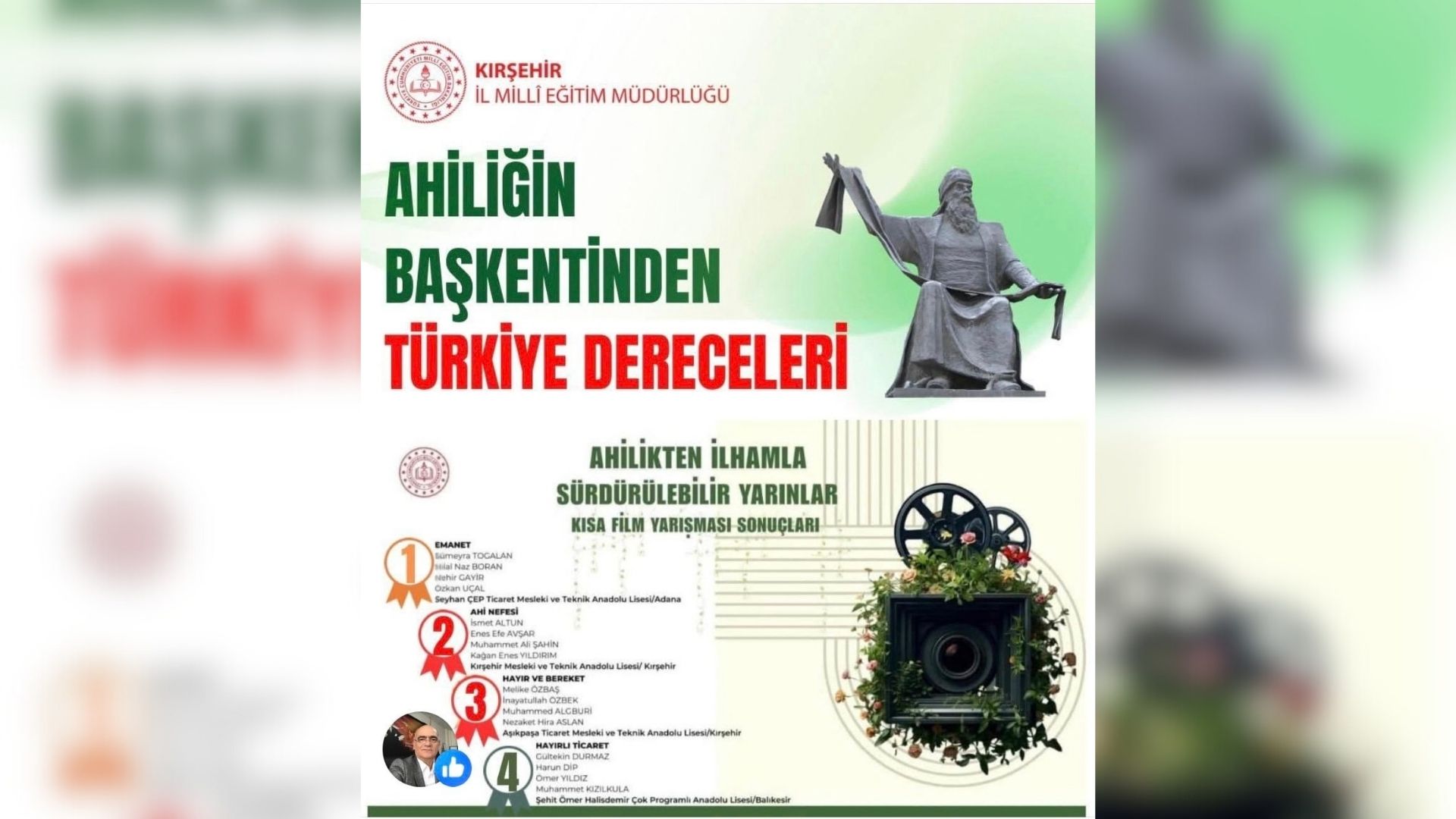 Kırşehir Mesleki ve Teknik Anadolu Lisesi “Ahi Nefesi” adlı filmle Türkiye ikinciliğini, Kırşehir Aşıkpaşa Ticaret Mesleki ve Teknik Anadolu Lisesi ise “Hayır ve Bereket” adlı eserle Türkiye üçüncülüğünü kazandı.