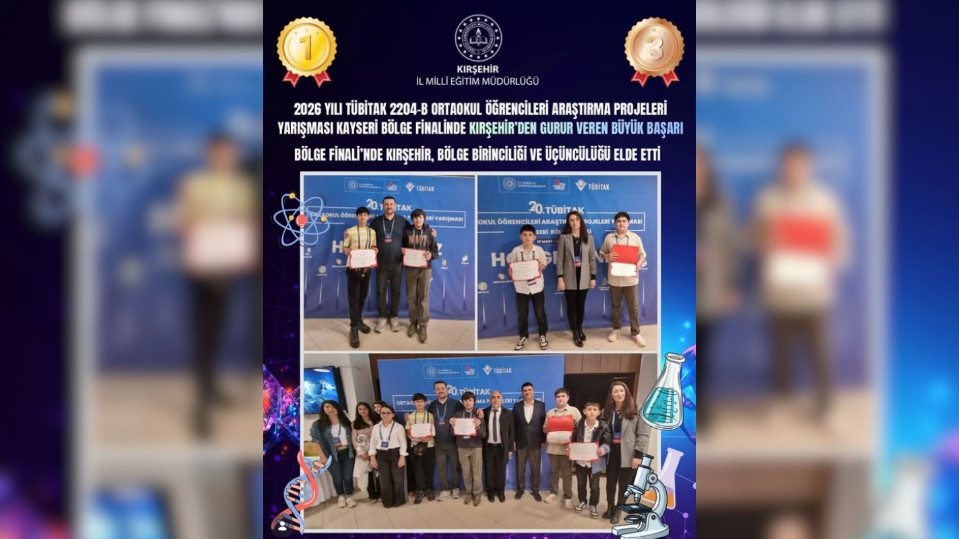 Kırşehir, TÜBİTAK 2204-B Ortaokul Öğrencileri Araştırma Projeleri Yarışması Kayseri Bölge Finali’nde önemli dereceler elde etti.