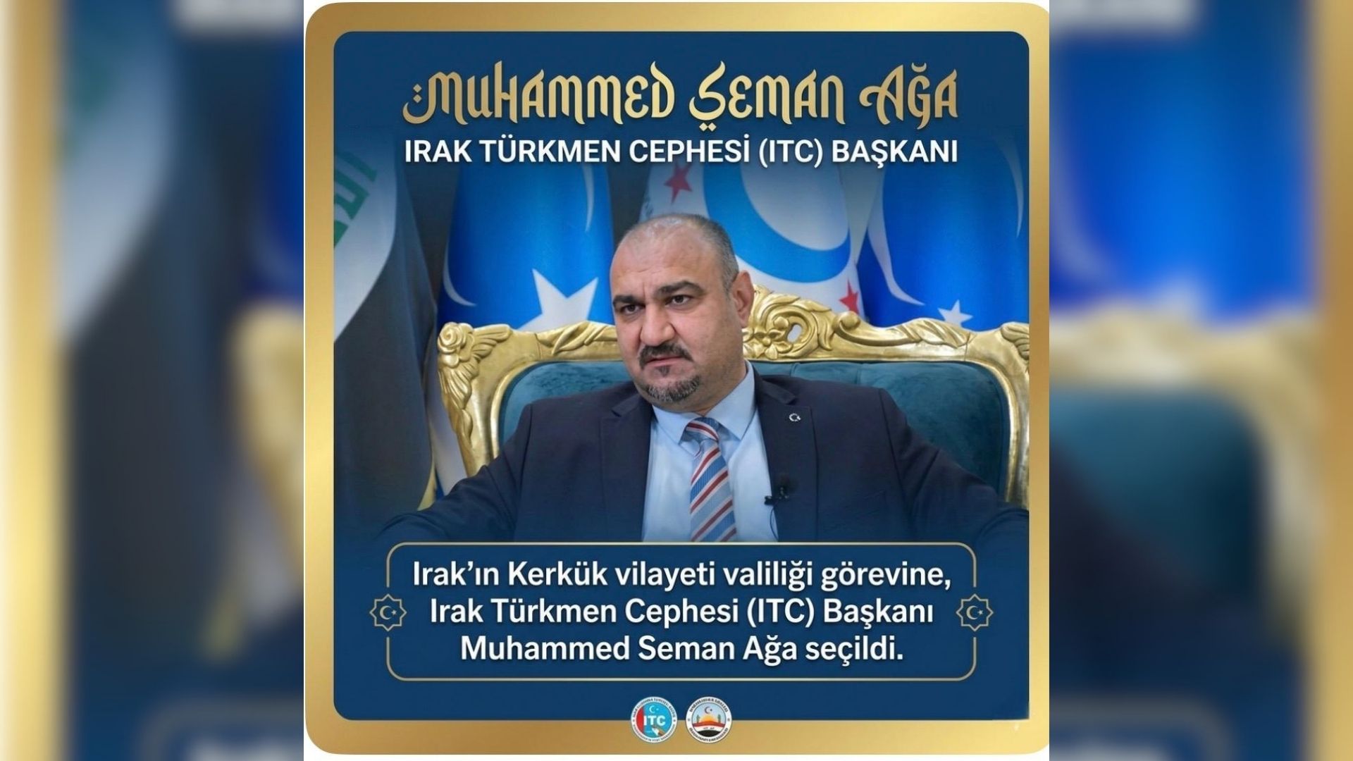 Irak’ta Türklerin yoğun olarak yaşadığı Kerkük Vilayeti Valiliğine Irak Türkmen Cephesi (ITC) Başkanı Muhammed Seman Ağa seçildi.