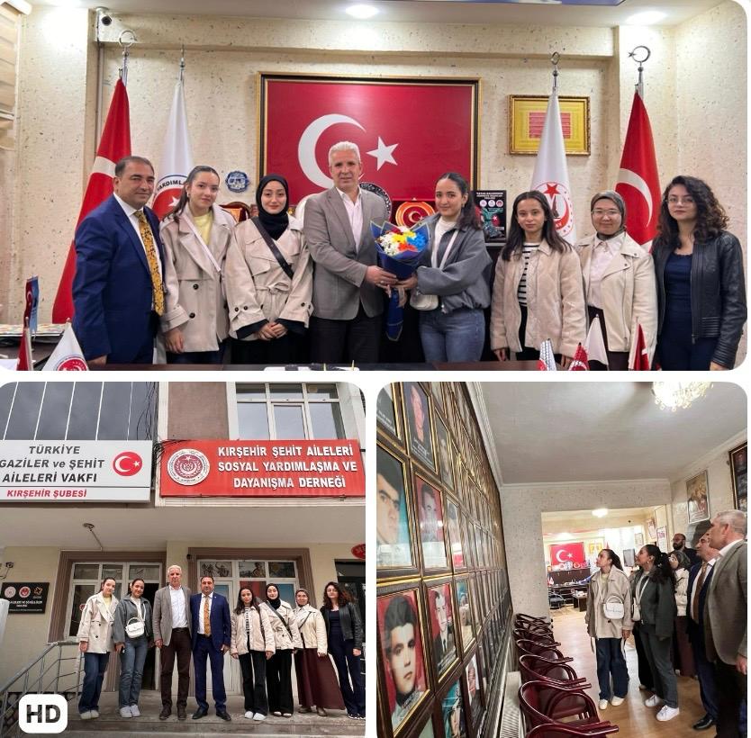 Prof. Dr. Yakup Akyel eşliğinde gerçekleştirilen ziyarette, öğrenciler Gaziler ve Şehit Aileleri Vakfı Kırşehir Şube Başkanı Mutlu Kılıçarslan ile bir araya geldiler.